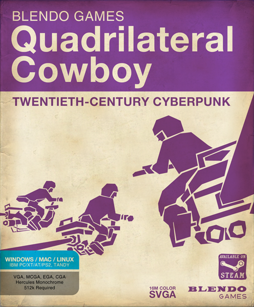Yeah, so Quadrilateral Cowboy is a first-person game and it uses traditional first-person controls. So you're walking around climbing into things, sneaking around, opening doors, stuff like that. One of your tools is the portable hacking deck that you can drop down, and once you use that you kneel down and start typing commands into your computer deck and manipulate the world.