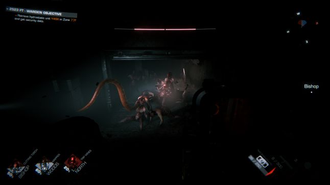 Part of GTFO's reason for being is to force actual cooperation between players, to force them to go about their missions working together, with purpose, instead of with everyone just doing their own thing. How does that work in practice? What does four players working together in a difficult situation mean, in play terms?