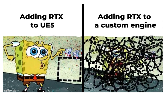 When you’re building your own engine, though, updates don’t come automatically. If a new version of DirectX is released or new rendering trends emerge, you have to study the theory behind those technologies, and manually integrate them into your engine, and only then can you start using them in your game. This can be a complex and time-consuming process, especially for a small team. For example, a quick YouTube tutorial on “How to add RTX lighting in UE5” is 40 seconds long. But to add RTX lighting to your own engine, in a way that meets all your game’s needs and is well-optimized, would take much more time and effort.