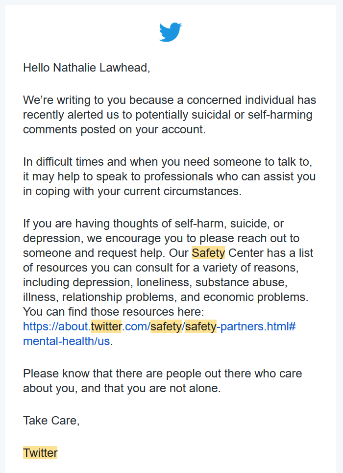 I can’t count the times I’ve been called “manipulative” for sharing how much I want to die because of what happened to me. I can’t really safely talk about it without having my social media reported for self-harm. It helps to talk about it, but I know I can’t without consequence.