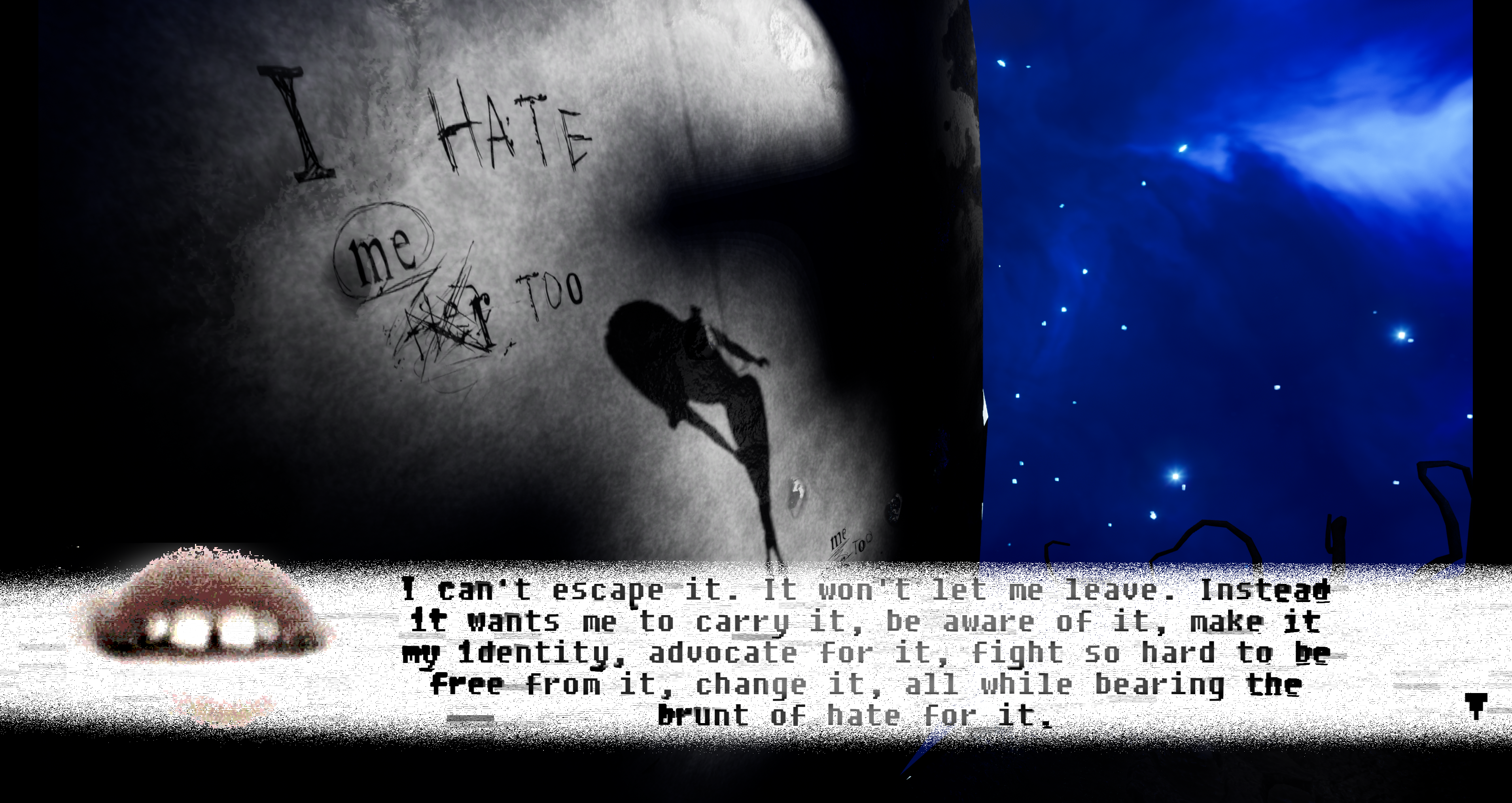 Quite a while back Swanmachine (who also makes beautiful things!) reached out to me about the “queer traumatic/erotic vent game jam” that was being organized. The jam is still ongoing as of writing this!