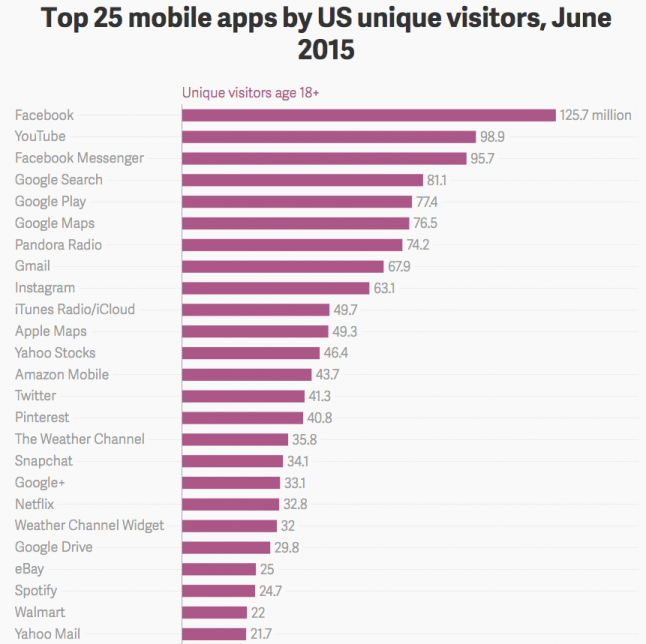 For more details about the report and ComScore's metholodogy (which includes measuring monthly unique users rather than monthly active users in an effort to keep people with multiple mobile devices from skewing the results) check out the full story over on Quartz.