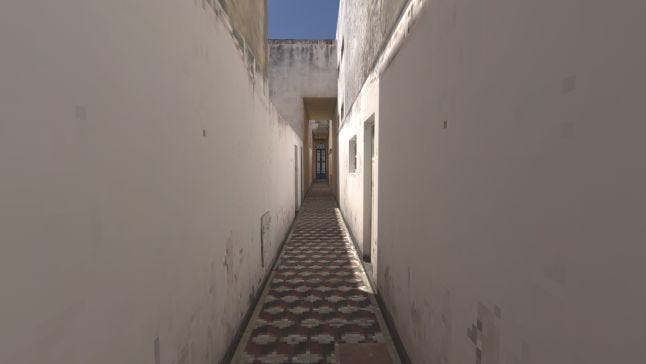 Promesa consists of scenes and short texts. It doesn’t have a traditional narrative or story. It’s more about experiencing these places for a short time and feeling present in them. The scenes are also very linear. They are built more or less like a dolly shot, but the things you are seeing undergo some changes and variations while you wander through them. The goal was to develop emotional tension from the things that happen while you are walking through them. There’s not much to “understand”.