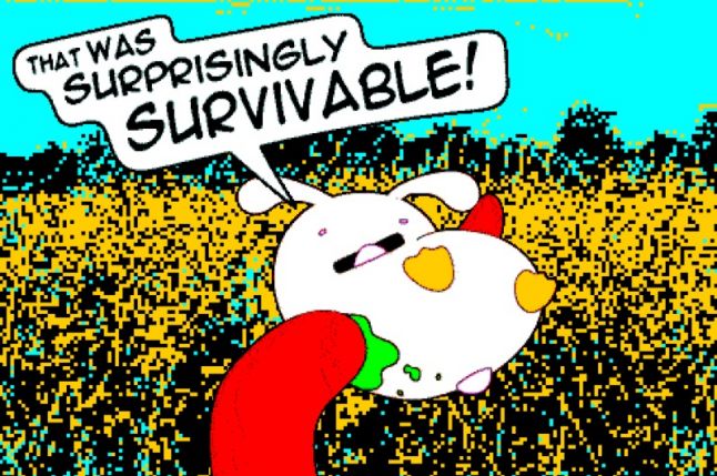 There where some topics I really wanted to cover. Social awkwardness, and rejection, in Pages 18 and 19. The characters drowning in lava while reassuring each other in Page 24 was a pretty important metaphor. Happily falling on spikes while yelling how amazing life is in Page 1 was a must.