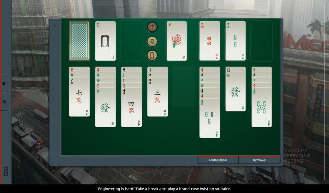 SHENZHEN I/O is about being an engineer, so we wanted it to have an element of things engineers do that aren’t strictly engineering. Things like checking email, looking up documentation, or even procrastinating by playing a game of solitaire.