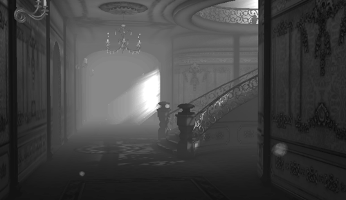 The art style is inspired on rococo silhouettes from 18th century. We chose to use the black and white to make it look more dramatic. The environment feels mysterious, elegant, and the asymmetric ornaments give it a special touch. Also to learn more about the art inspiration, check this article from Thais Weiller, our former producer. The first idea was to make a detective-like game in this style, enabling the player to move around the scene, collecting clues and solving puzzles, but since it was a tech demo, the gameplay was simplified.