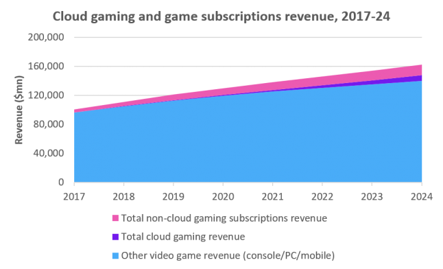It’s important to highlight that the cloud gaming market is currently minuscule – representing less than 1% of the $120 billion global games market, according to Omdia’s Cloud Gaming Revenue Forecast. It will however grow to 5% in 2024, when it is set to generate $8 billion globally (see below).