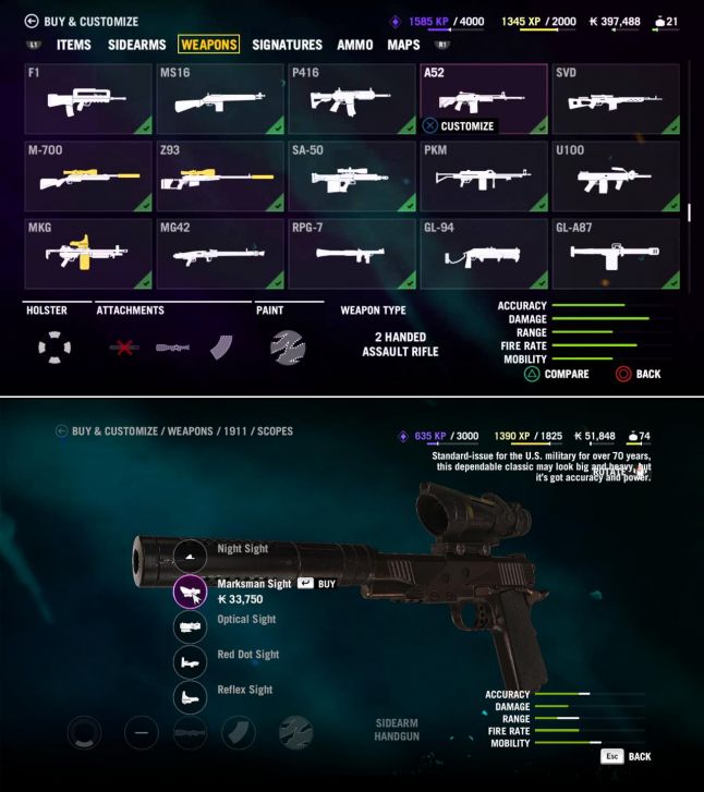 In Far Cry 4, the only numbers displayed are how much it costs to buy the item — relative strengths are shown through a bar and text descriptions, then through the player’s experiences in game.