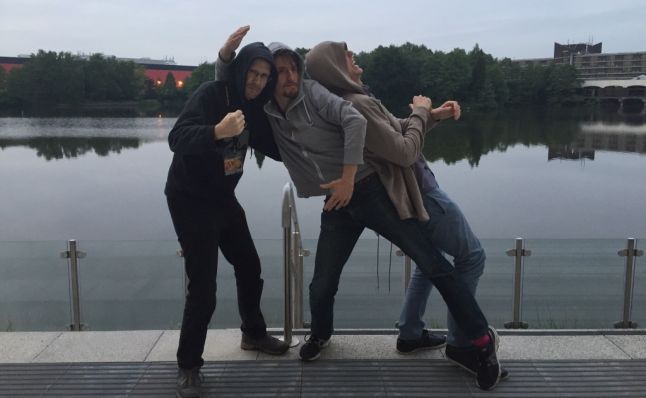 Left to right: Shut Up & Sit Down hooligans Paul Dean, Matt Lees and Quintin Smith