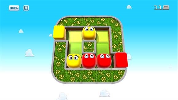 Skiddy - can have 2 different colors and will move freely inside the grid until they hit an obstacle. They can leave the level when they touch a matching color goal.