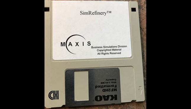 More of a curiosity from a bygone era than a full-fledged game, SimRefinery was ultimately lost to the annals of time -- until now. After reading that article on Ars, one reader called 'postbebop' commented with an image (shown below) of what appeared to be a copy of SimRefinery on a 3.5in floppy disk.
