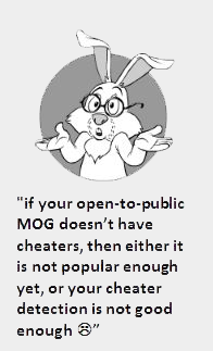 It is next to impossible to find a successful multiplayer online game (one that goes beyond only playing with friends) that is free from cheaters. In other words, if your open-to-public MOG doesn’t have cheaters, then either it is not popular enough yet, or your cheater detection is not good enough . For the rest of you who do have to deal with cheaters – take a look at the following list of DO’s and DON’Ts (and for more discussion on the subject of cheating– make sure to get all three volumes of the book as it comes out).