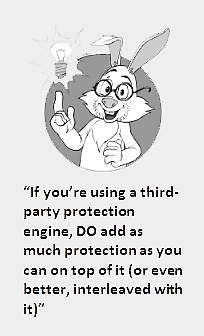 #2. If you’re using a third-party protection engine, DO add as much protection as you can on top of it (or even better, interleaved with it)