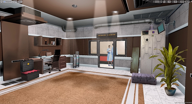 Yeah, we had to make sure that in giving the player that time to explore environments, they were all fully realized. We can’t really do like in traditional game development which is sort of cutting back-faced polys and hiding stuff that is not in view. When you have head-tracking VR environments, players can look underneath desks, or behind cupboards or in cupboards so we had to make sure the world was as detailed and as fully visualized as possible which means we had a lot of geometry to get in.