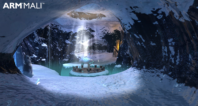 Ice Cave, the flagship demo from ARM Mali Ecosystem, has been shown with great success at many recent major events. The demo has been developed in Unity and aims to demonstrate that it is possible to render high visual quality content on current mobile devices. A number of highly optimized special effects were developed in-house, specifically for this demo, some of which are based on completely new techniques, for example the rendering of shadows, refractions and even the Tauyuan effect, all based on local cubemaps.