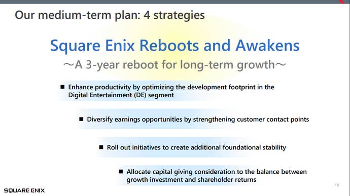 Square Enix also provided an update on its three-year 'medium-term' business plan. "In FY2025, we fundamentally revamped our development organisation structure for domestic studios," the report read.