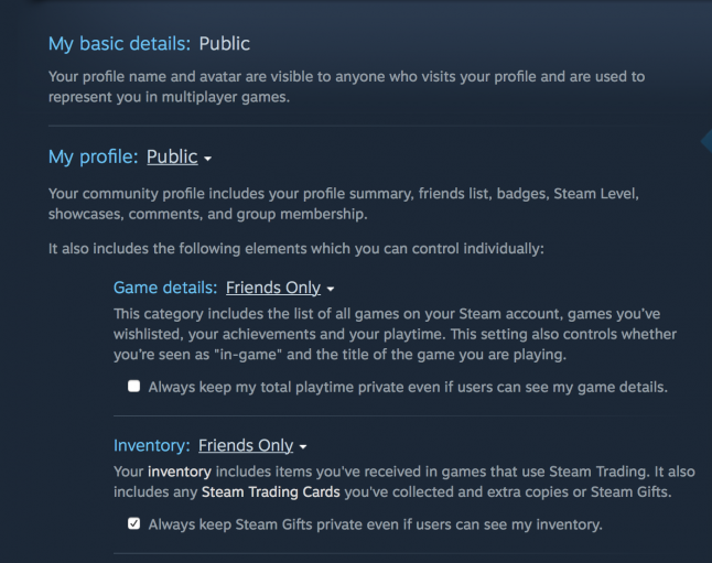 The tweaks allow Steam users to pick and choose what information they share with friends and the wider Steam community, letting them stop people from viewing their 'game details,' which includes the list of titles they've purchased or wishlisted, along with their achievements and total playtime.