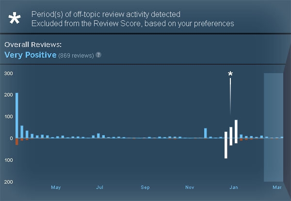 "Once our team has identified that the anomalous activity is an off-topic review bomb, we'll mark the time period it encompasses and notify the developer. The reviews within that time period will then be removed from the Review Score calculation."