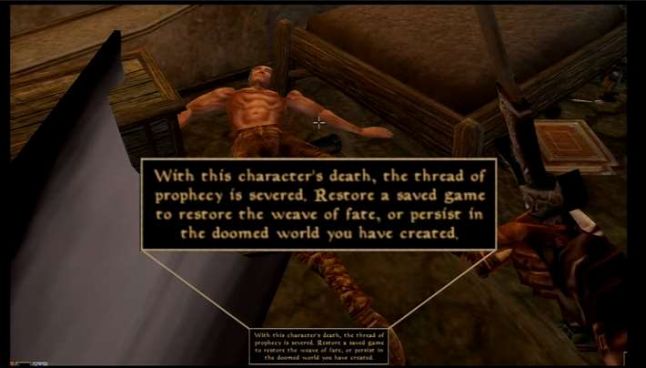 In The Elder Scrolls: Morrowind, it is possible to kill the main questgiver. The game does not avoid it in any way, granting full agency to the player. Instead, the game simply responds with a message embedded into the narrative while indicating that the game can't be completed within that line of happenings. (Hudson, 2011)