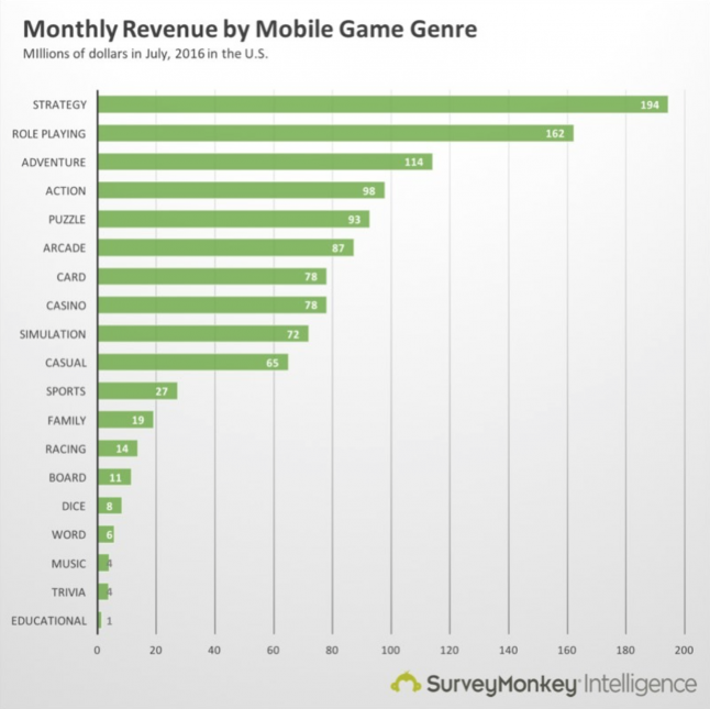 A new report from SurveyMonkey Intelligence shows that when it comes to mobile games, those in the strategy and role-playing genres are the most lucrative.