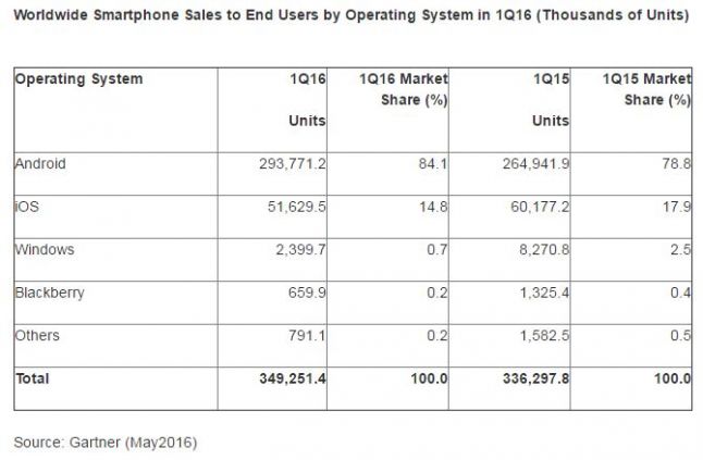 Market research firm Gartner, Inc. is reporting that worldwide smartphone sales are up year-over-year for the first quarter of 2016, and Android devices make up an increasing majority of those sales.