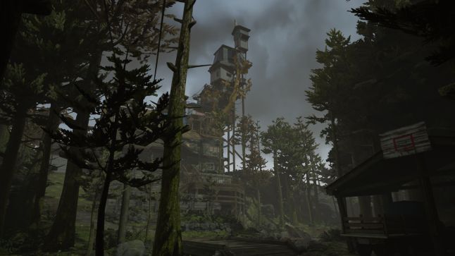 The first of these dimensions becomes clear to you within about five minutes of gameplay: up and down. In terms of its physical structure, verticality is what truly stands out about the Finch house. You’d have to be looking at your feet not to notice the building’s impressive stature as you head up the driveway. The effect is even amplified by dipping down into the woods along the way. With its additive form and modular construction, the house looks like a half-played game of Jenga: tall, precarious, and curiously alluring. Something about it just makes you want to grab a support column and give it a good shake. Players of course progress towards the top as they get further along in the story, but the final objective is visible from the very beginning: it’s that tiny box at the tippy-top of the (family) tree. Your visit to the Finch house ultimately takes you from a fallout bunker below the basement to this airy loft above the attic.