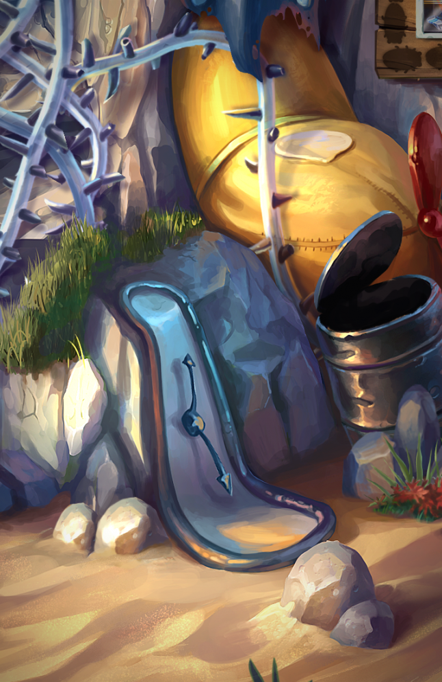 Telegraphing abstract ideas is never easy, but the surreal world setting is actually pretty forgiving in this regard. You can always use something taken straight from Salvador Dalí’s art and build on associations.