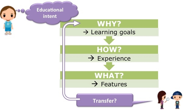 One last hurdle to take into account is the question of transfer (see Fran Blumberg’s edited book Learning by Playing: Video Gaming in Education for more details; 17). Even if your educational game has great UX and great educational value, what the player will learn in the game will not necessarily transfer to new situations. However, transfer of learning – the extension of what was learned in one context to a new one – is the ultimate goal for educators. Consider a game with a true educational value like ST Math. This game, developed by MIND Research, is meaningful because it can claim some measurement of transferability onto State Math Test proficiency (if we accept that standardized academic tests measure what is important for children to learn). Another approach would be to design games in which the classroom curriculum has to be transferred into the game in order to overcome its challenges. Seymour Papert, mathematician and educator, had such approach as early as the 1960s. Inspired by Jean Piaget’s constructivist theory (18), Papert holds a constructionist approach to learning, by which learning is more efficient through discovery, when the curriculum is manipulated in contextual and meaningful situations. Instead of using computer games as means to