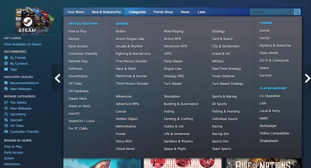 If you look at the history of game platforms, Steam has had a more complex and extensive taxonomy/category system than almost any other platform out there. Sure, it’s been loose and informal at times. But I really think it plays in Steam’s favor.