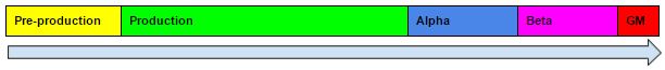 Going from left to right in the bar representing development above, you will find that the majority of the time consists of production and pre-production. Their relative sizes may of course vary a lot, but this simply means that a well-planned projects spends a lot of time preparing for production and then even more just creating the basic systems.