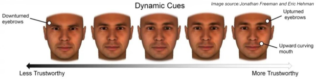 When examining faces, eyebrows are a key component in conveying different messages. For instance, according to Hehman, people with naturally more downturned brows are often perceived as less trustworthy and having a bad temper, whereas upturned eyebrows are seen as more trustworthy (Hehman et al., 2015).