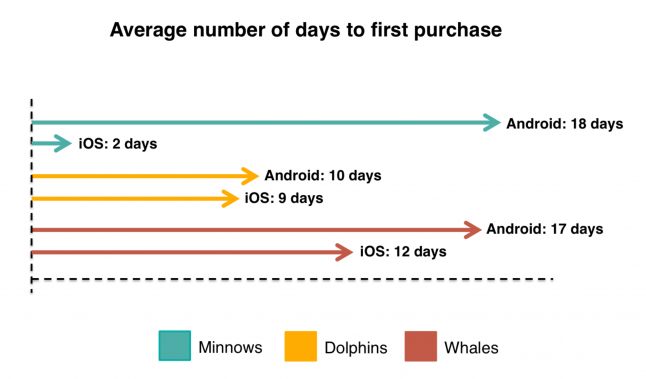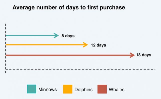 Whales take a longer time to convert, spending up to 18 days before they make their mind to pay, while minnows only 8 days.