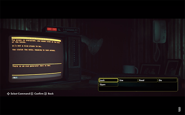 But, for the game’s Switch release this year, No Code removed typing entirely. Instead, the studio replaced it with a menu-based approach that wouldn’t look out of place in a point-and-click adventure game. In the Switch version, the player selects from a variety of verbs like “use,” “open” or “go” and then pairs the selected verb with a conditionally available noun. Whereas Stories Untold on PC drew from the adventure games of the ‘80s, Stories Untold on Switch draws from the adventure games of the ‘90s.