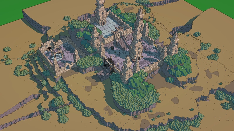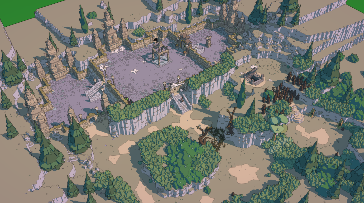 Unexplored 2: The Wayfarer’s Legacy leaves the sprawling generated dungeon of its prequel behind. Its grand adventure takes place in an open world filled with bustling towns, dense forests, ancient ruins, and jagged cliffs. Generating these types of levels calls for a different design philosophy. Where the dungeons of Unexplored 1 took full advantage of the notion of ‘cyclic dungeon generation’, we expanded and adapted the level generator to encompass what we like to call ‘the theory of the place’.