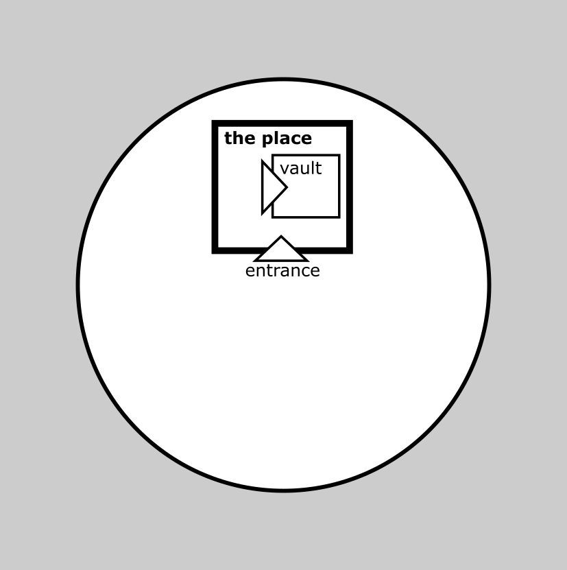 Within the place there might be a room that is even harder to get into which we designate as ‘the vault’. The vault is a good place to store treasure or any type of ‘collectible’ level objective that cannot be nailed down. Frequently the vault is locked and the key into the vault is hidden elsewhere in the place or placed under the protection of a guardian that calls the place home.