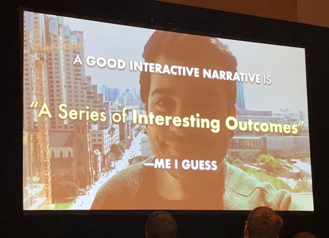 Remo (incidentally, a Gamasutra alum) cited a popular game dev quote that’s often attributed to Civilization creator Sid Meier: “A game is a series of interesting decisions." Remo put his own spin on that when it comes to games like Firewatch: “A good interactive narrative is a series of interesting outcomes."
