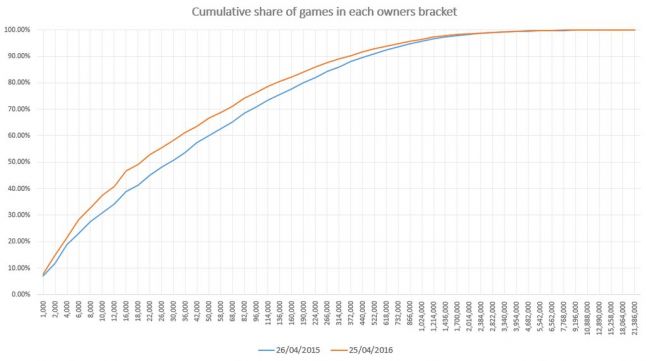 A median game on Steam now has 21,000 owners, down from 32,000 a year ago