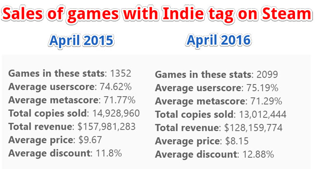 But on the other hand the sales for #10 Indie game in April 2015 were 104,000 copies and 102,000 in April, 2016.