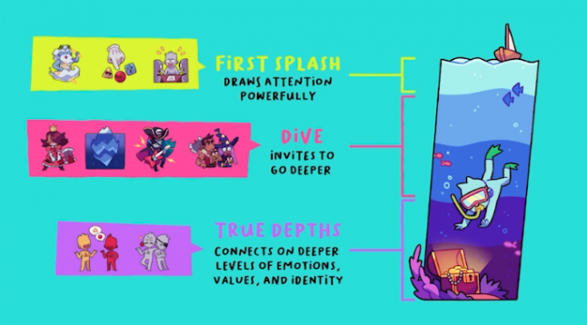The first bite is all about getting a stranger to interact with your fandom. For that introduction, Quijano dives into one hook of the many developers can use to draw a potential player into their world: "a first big choice."