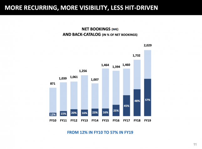 As always, Ubisoft’s back-catalog of titles gave a strong contribution to its net bookings. This year, back-catalog titles were responsible for 56.5 percent of the company’s overall net bookings, up from 47.6 percent last year.