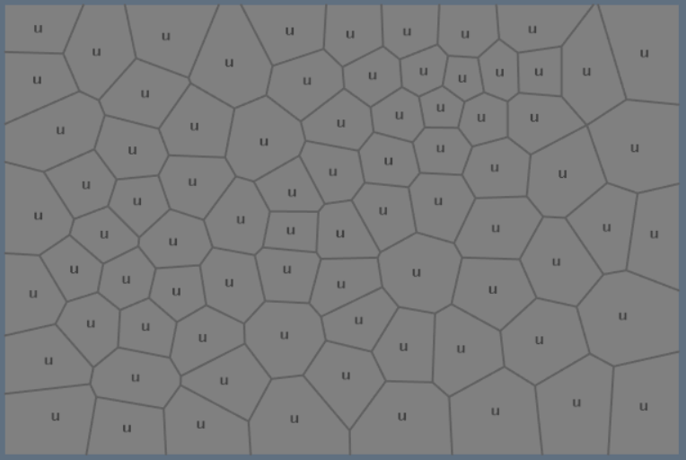 For Unexplored 2 we use different type of distribution of seed points. To start with, we seed one point for each tile. That way we are certain every tile in the tile map can be mapped to one cell in the voronoi diagram.