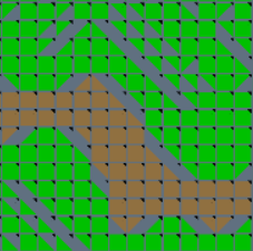 In our system this effect is easy to achieve. We simply introduce a different displacement rule that makes sure that tiles featuring artificial structures are not displaced. The generator uses smaller squares to mark these tiles and the game simply makes sure that all displacements are ignored: