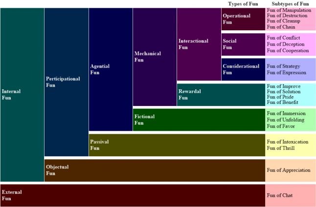 This classification is not exhaustive (as the authors themselves also mention). Also, since the mechanism by which each fun occurs is unknown, in order to make it a guideline on game design, the part which must rely on personal sensitivity is quite large.