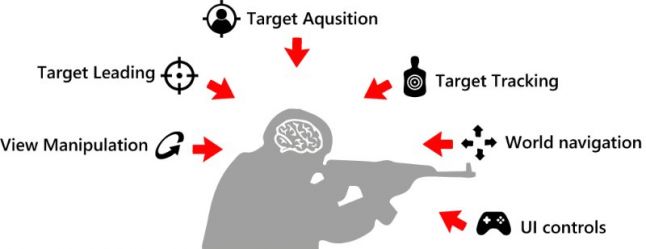 A FPS player is in fact juggling multiple cognitive loads of varying magnitudes, coordinating motor & sensory skills, overcoming the friction of controls in order to achieve his goal.