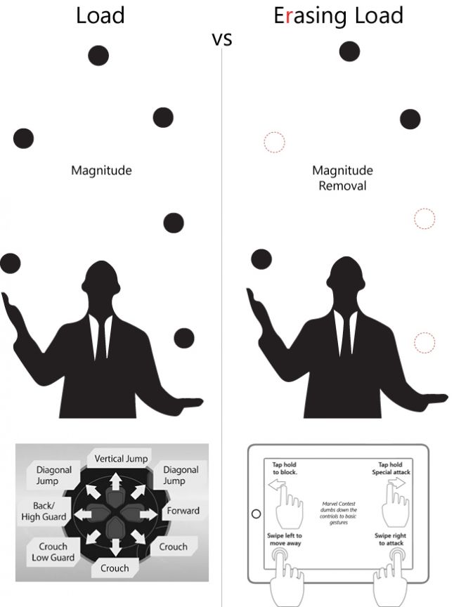 It has been achieved by something I refer to as Erasing of loads, now a rampant phenomenon in mobile gaming where in, the heavy cognitive loads involved in traditional pc and console games are either reduced or removed in magnitude by simplifying the inputs required in core mechnics or removal altogether, to achieve better balance for mobile audiences.