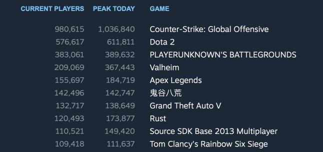 For context, that means the title attracted more users than heavy hitters like Apex Legends, Grand Theft Auto V, and Rust.