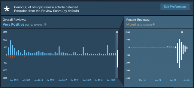 It was the first real test for Valve since it pledged to curb Steam review bombing by implementing a new "off-topic" review system that would identify and disregard disingenuous feedback, helping preserve the original scores of affected games.